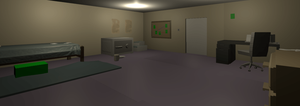 For example if you wanted a key to unlock a door, there is a script that checks if an object has been placed into a location and if so, trigger the effect. A key placed into a locked door will open it, a fuse put into the fuse box will turn all of the power on. This allows anyone to create a puzzle within the inspector. This means that any puzzle can be made to have any effect happen. The only time new code needs to be written is if you want a trigger that has not been made or an effect that has not been made.